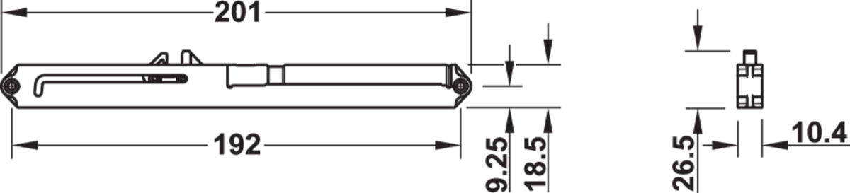 jedno ili obostrano, amortizacija uvlačenja za pričvršćenje vijcima na bočnim stranicama korpusa, zahvatnik vijcima na stranici ladice