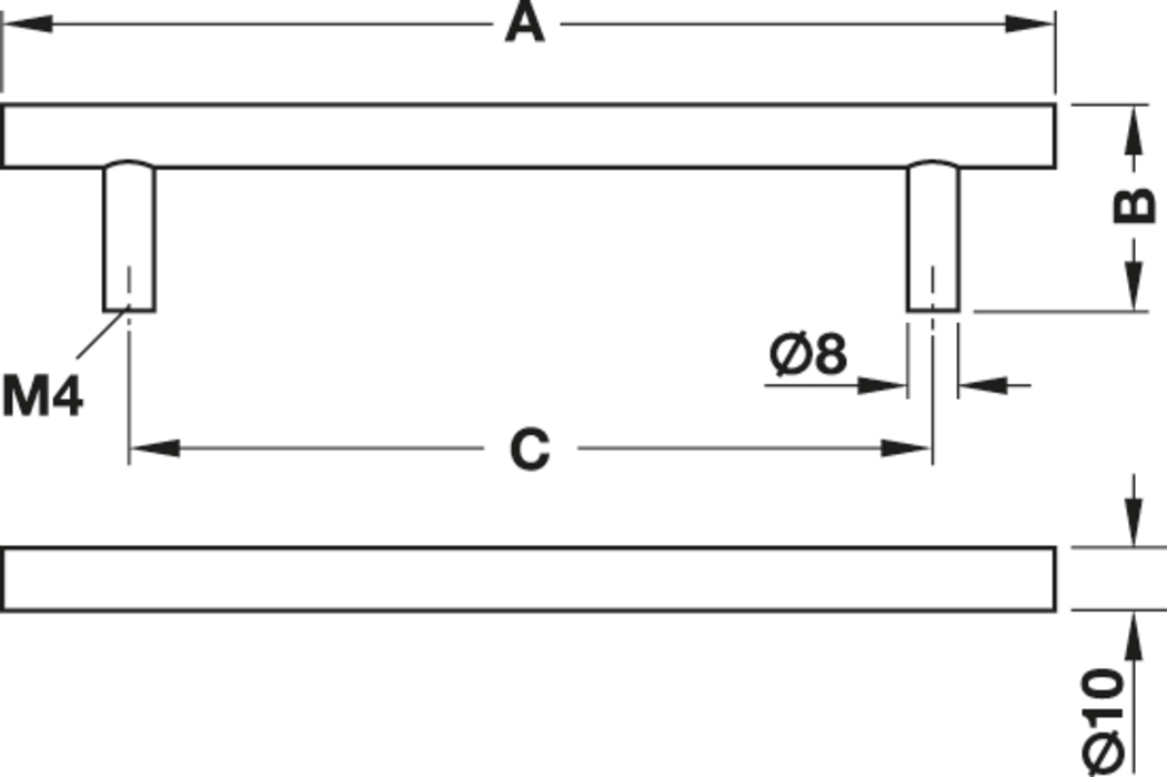 Häfele Ručkica na podnožju od nehrđajućeg čelika mat četkana promjer 10mm 600 x 35 mm
