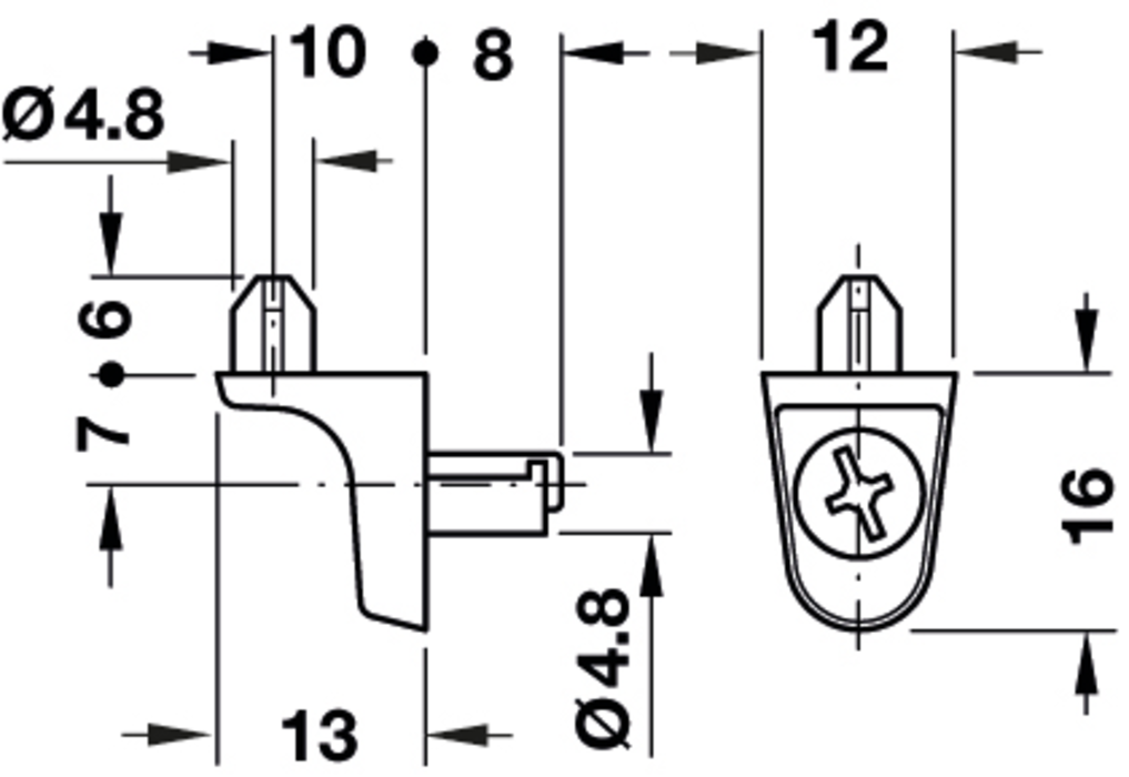 Häfele Lijevani cink, nosač drvene police, za umetanjei brzo zatezanje, promjer provrta 5 mm, nosivost 75 kg, klinom, niklana