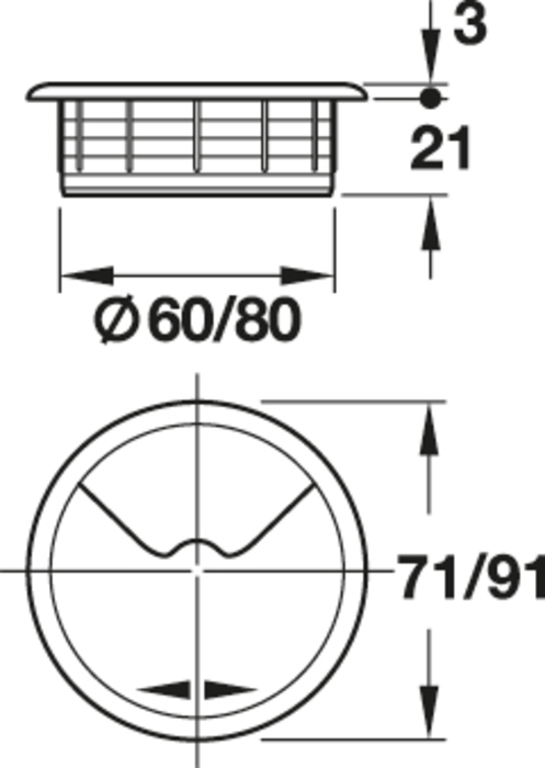 Häfele Setovi za kablove 2-dijelnilni, s okretnim segmentom u poklopcu promjer rupe 80 mm bijela